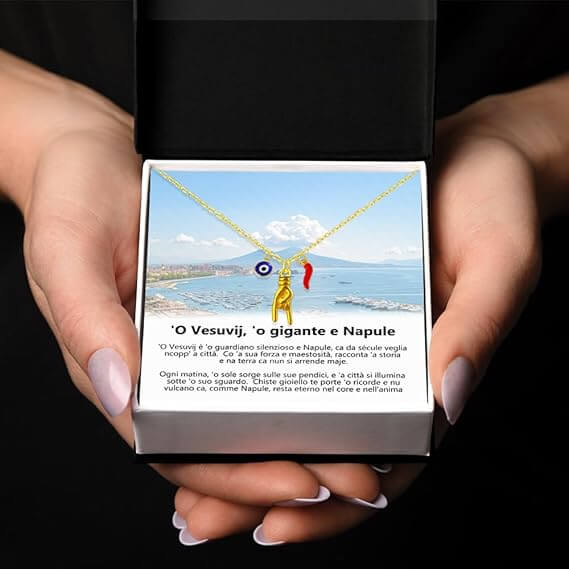 Questa collana rappresenta un legame eterno con Napoli, un gioiello classico e sempre di tendenza, simbolo di amore infinito.