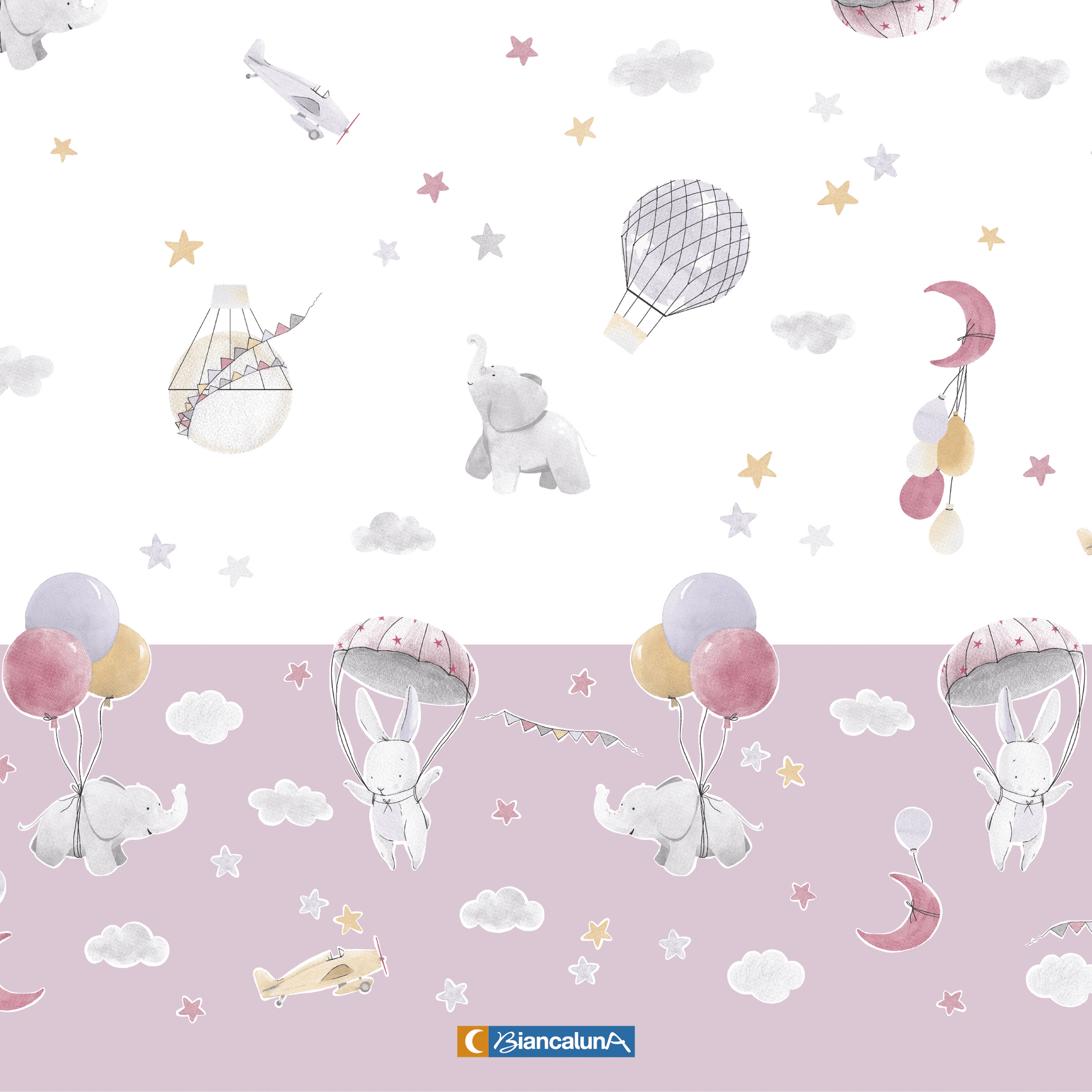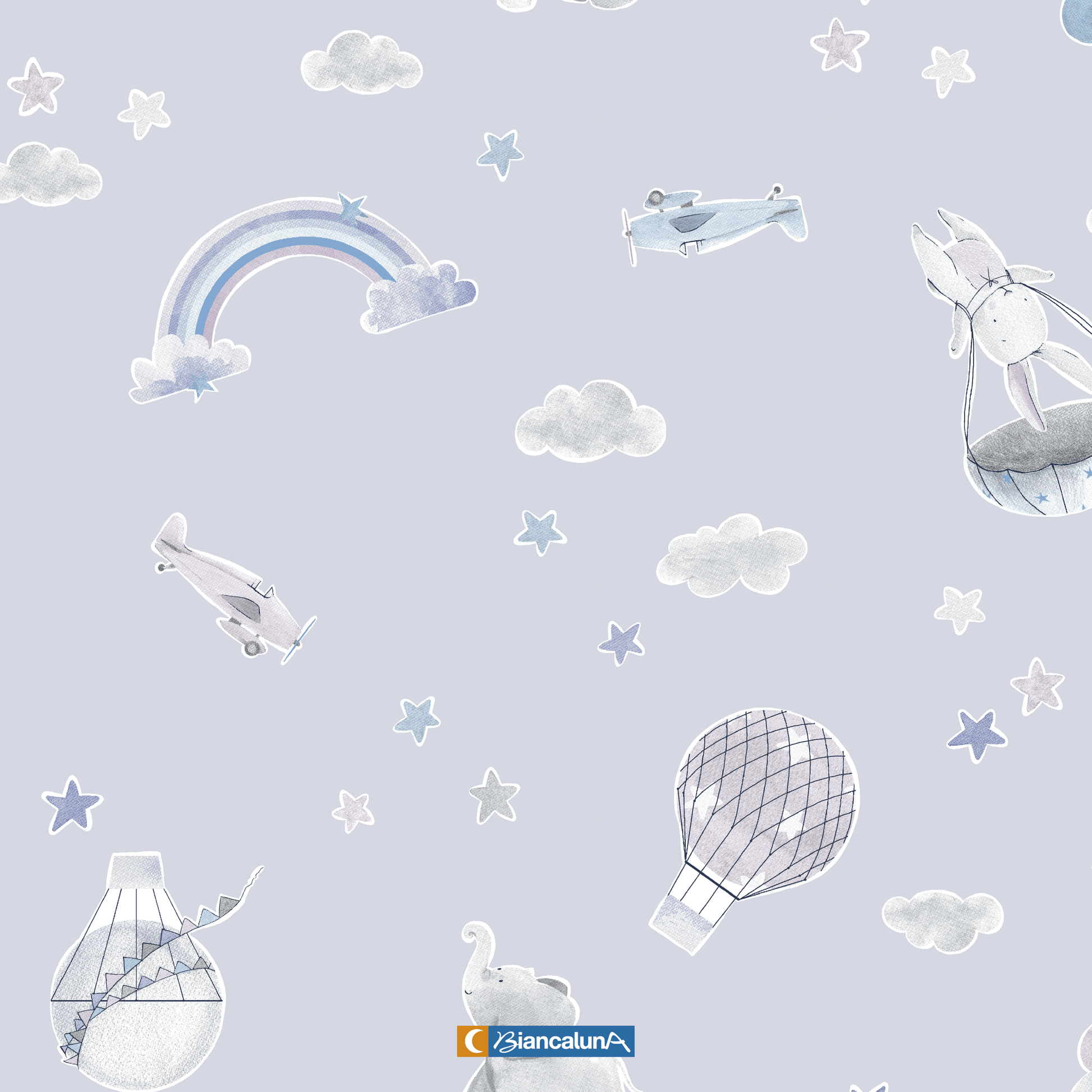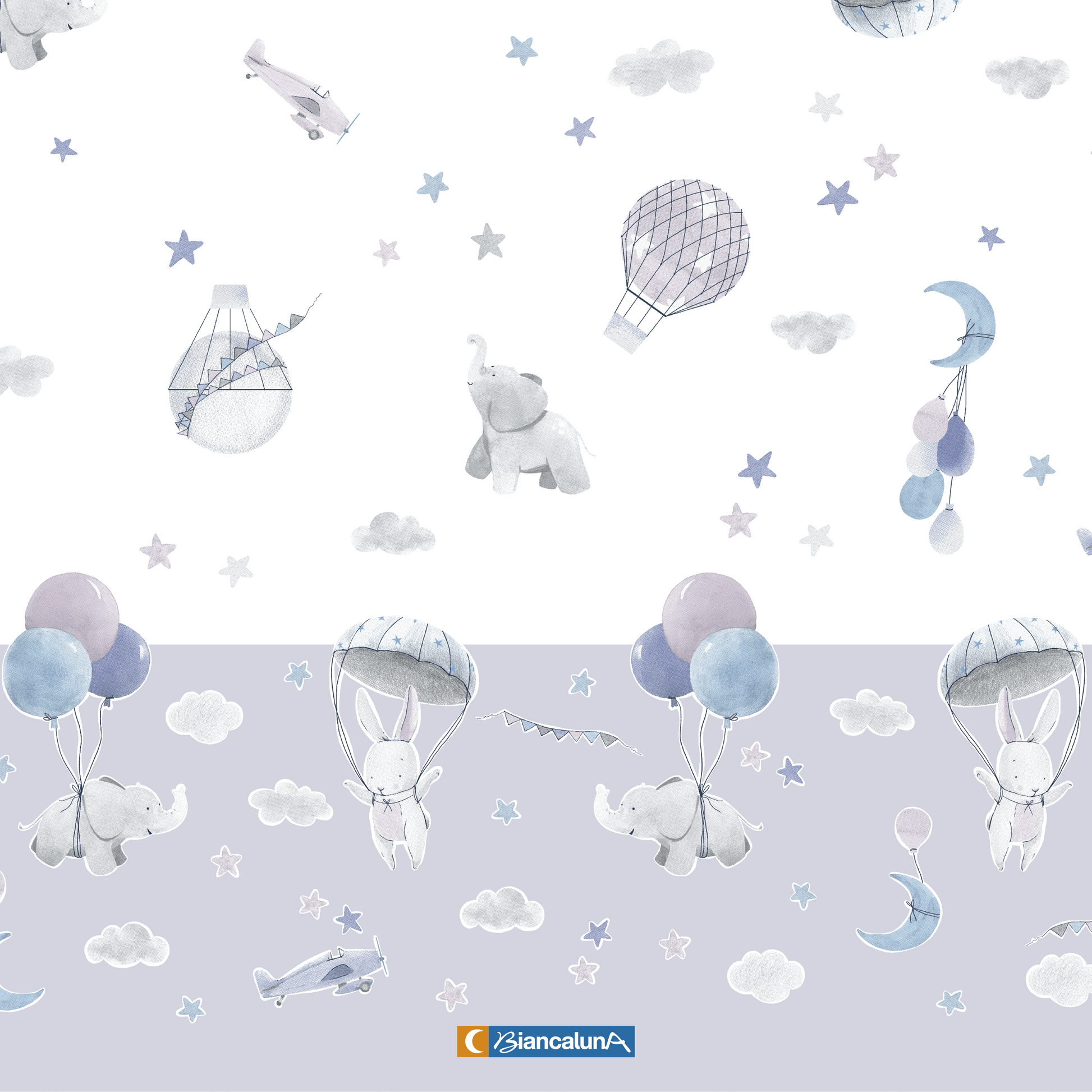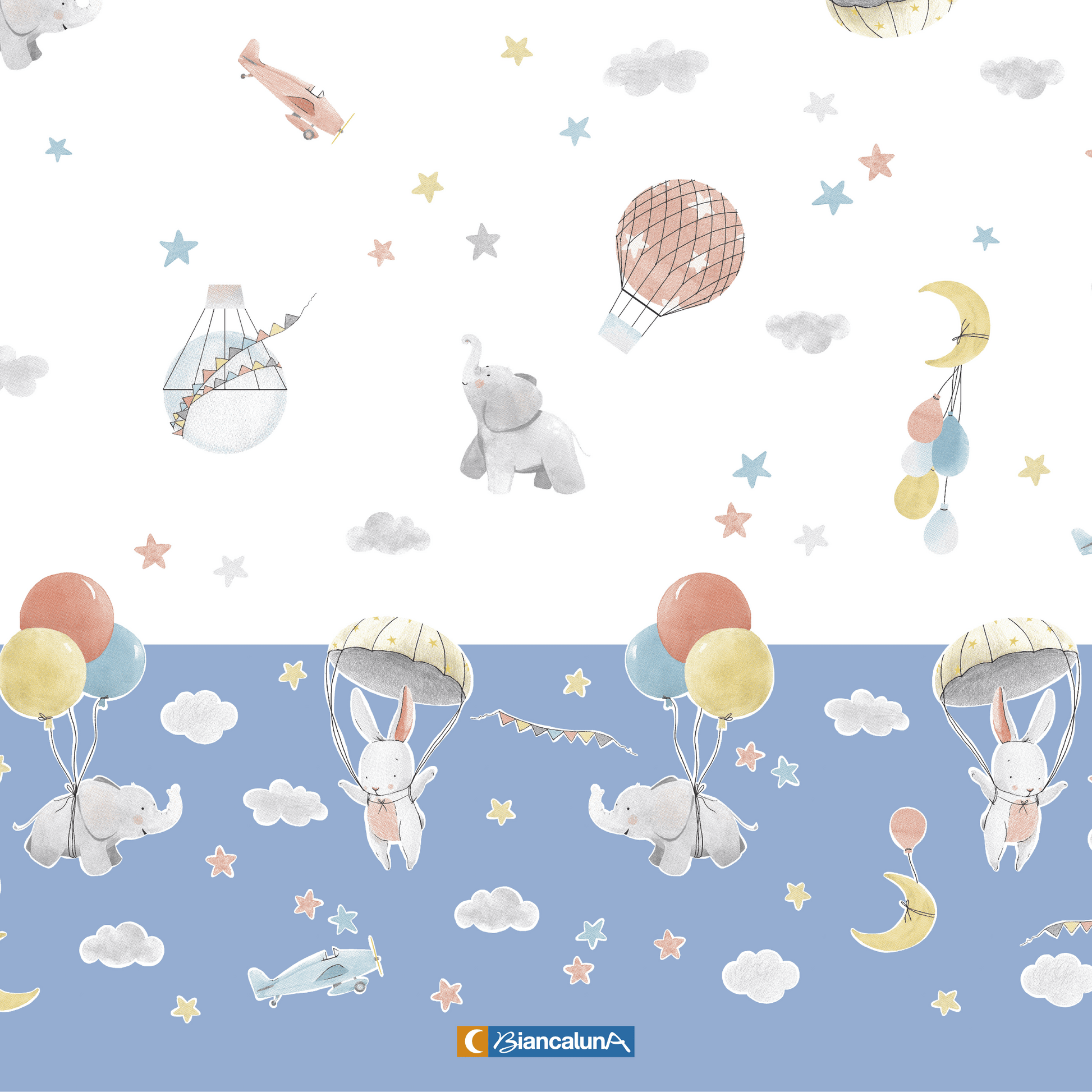 Coordinato culla/lettino in cotone stampato Biancaluna Nursery.