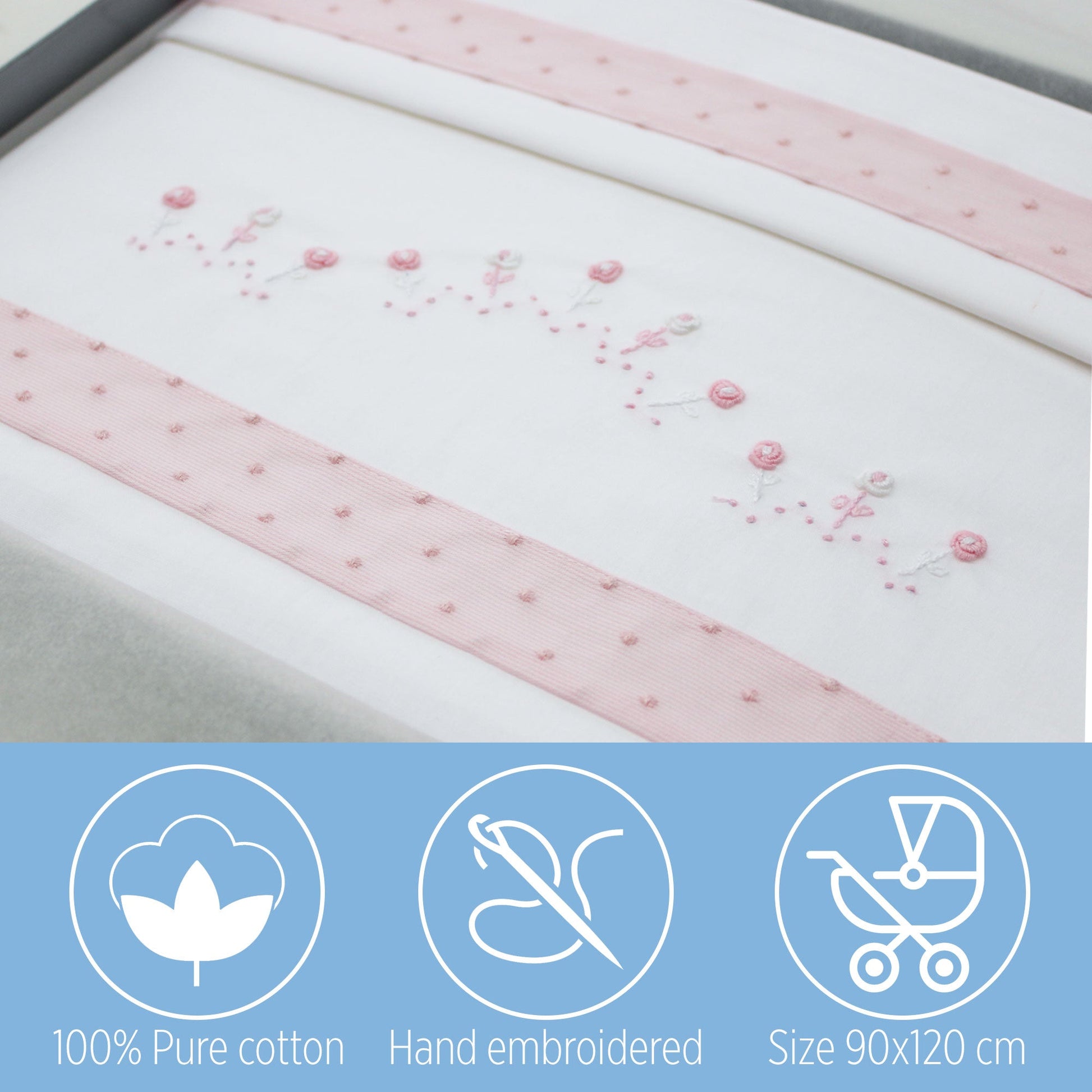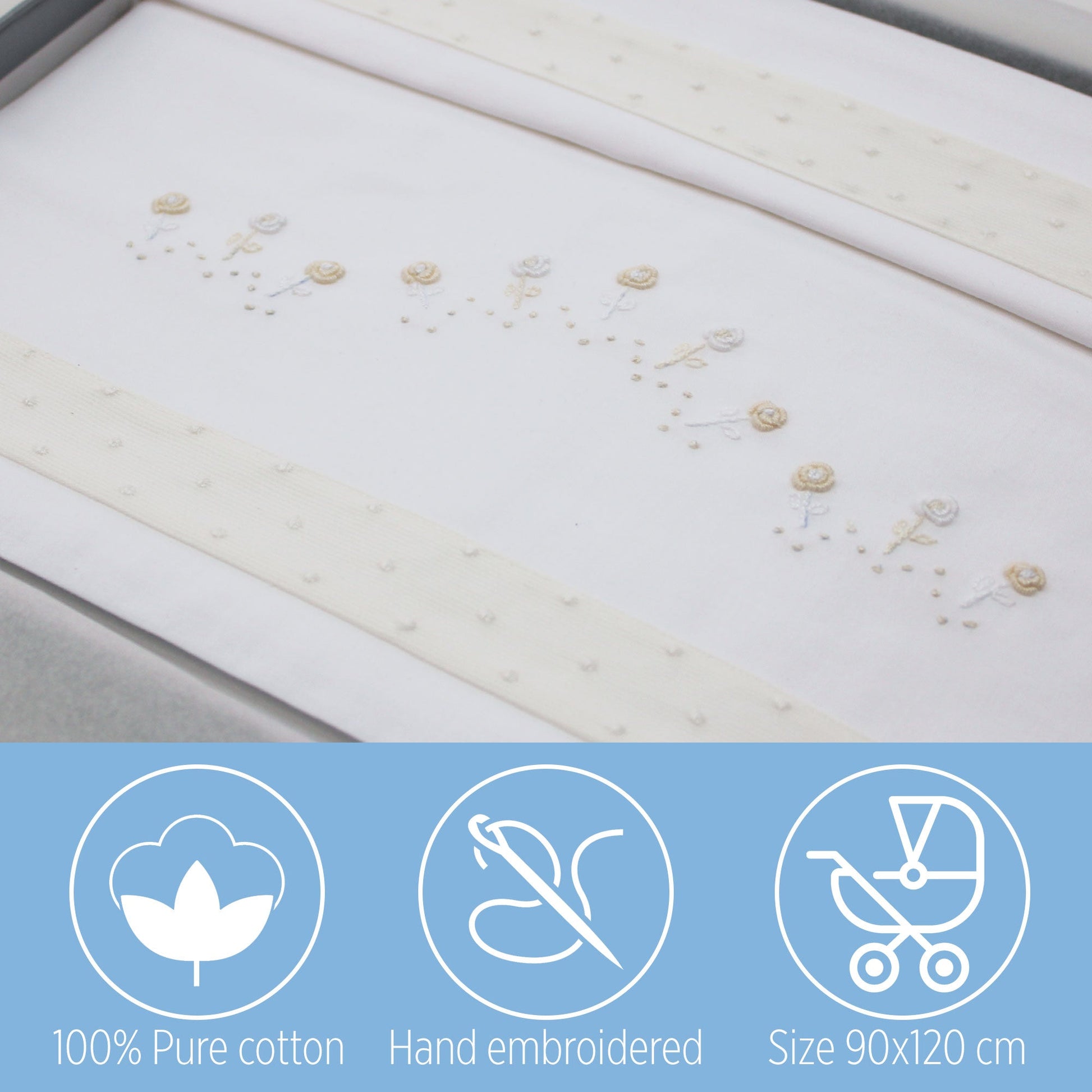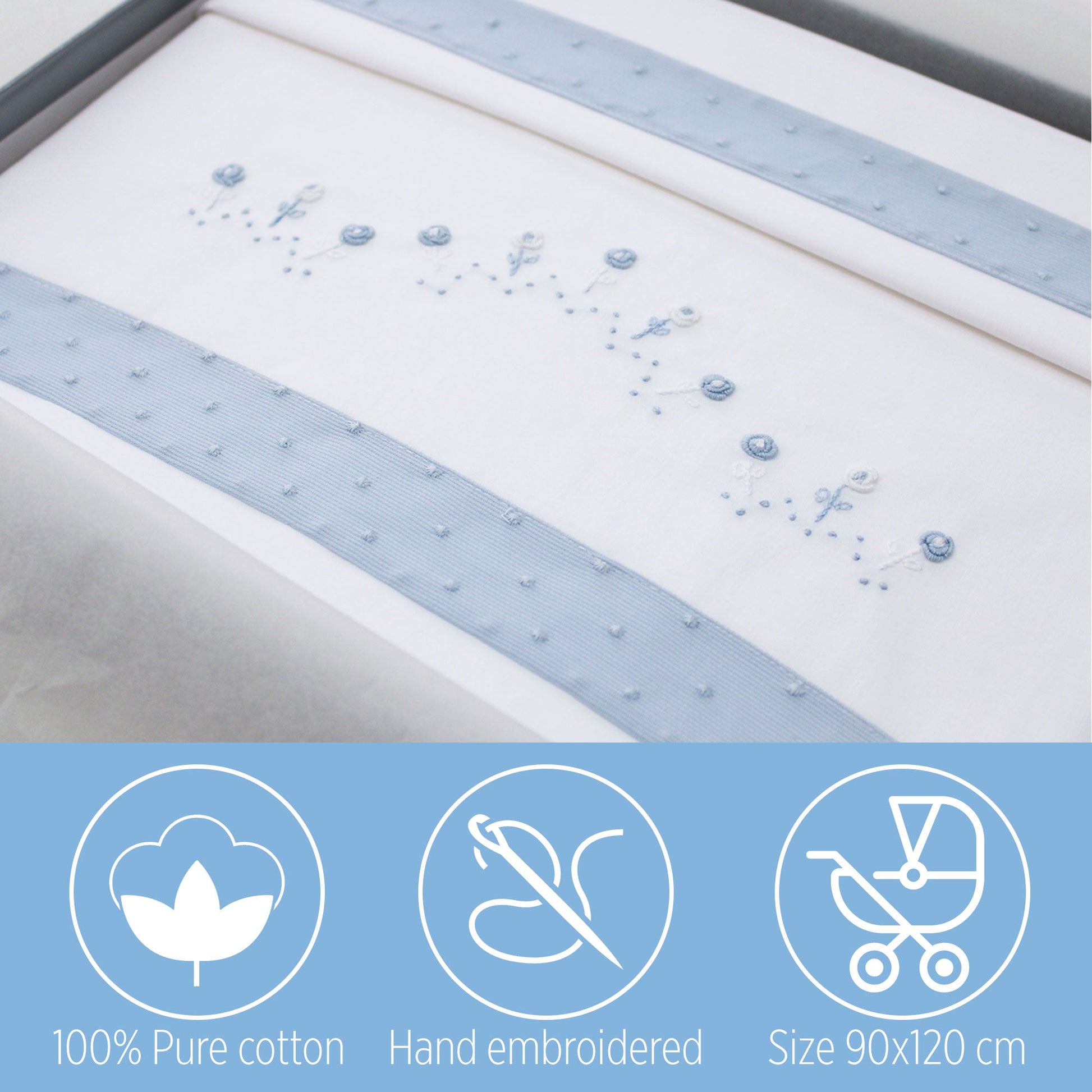 Coordinato Culla Carrozzina Ricamato a mano Elite set cotone 3 pezzi 6536