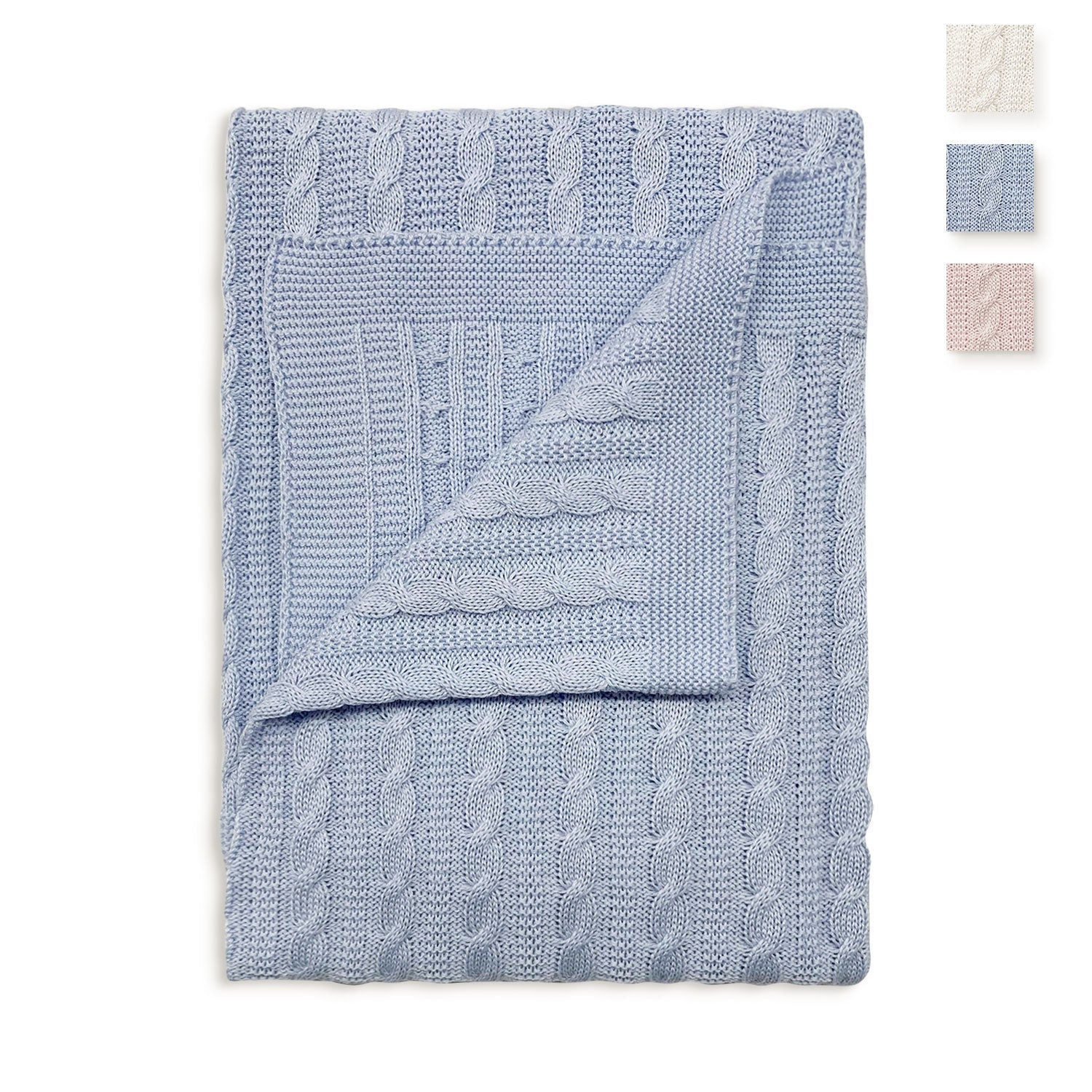 La copertina per neonato di Nazareno Gabrielli è in morbido tessuto con un delicato disegno fantasia treccia che avvolgerà il vostro bambino in un soffice e caldo abbraccio.