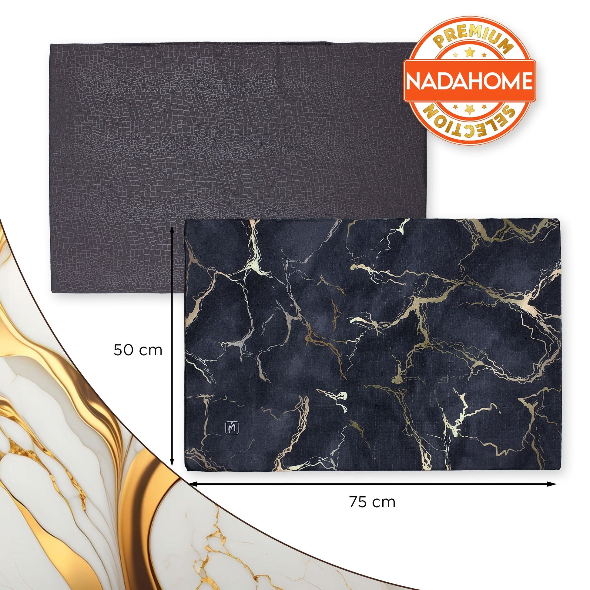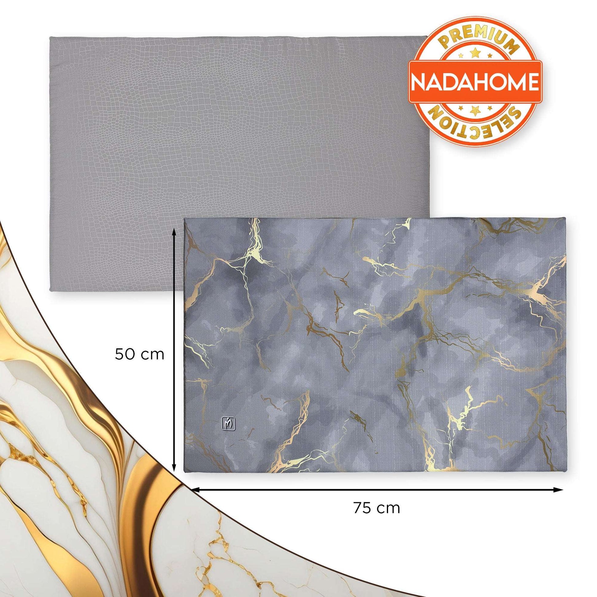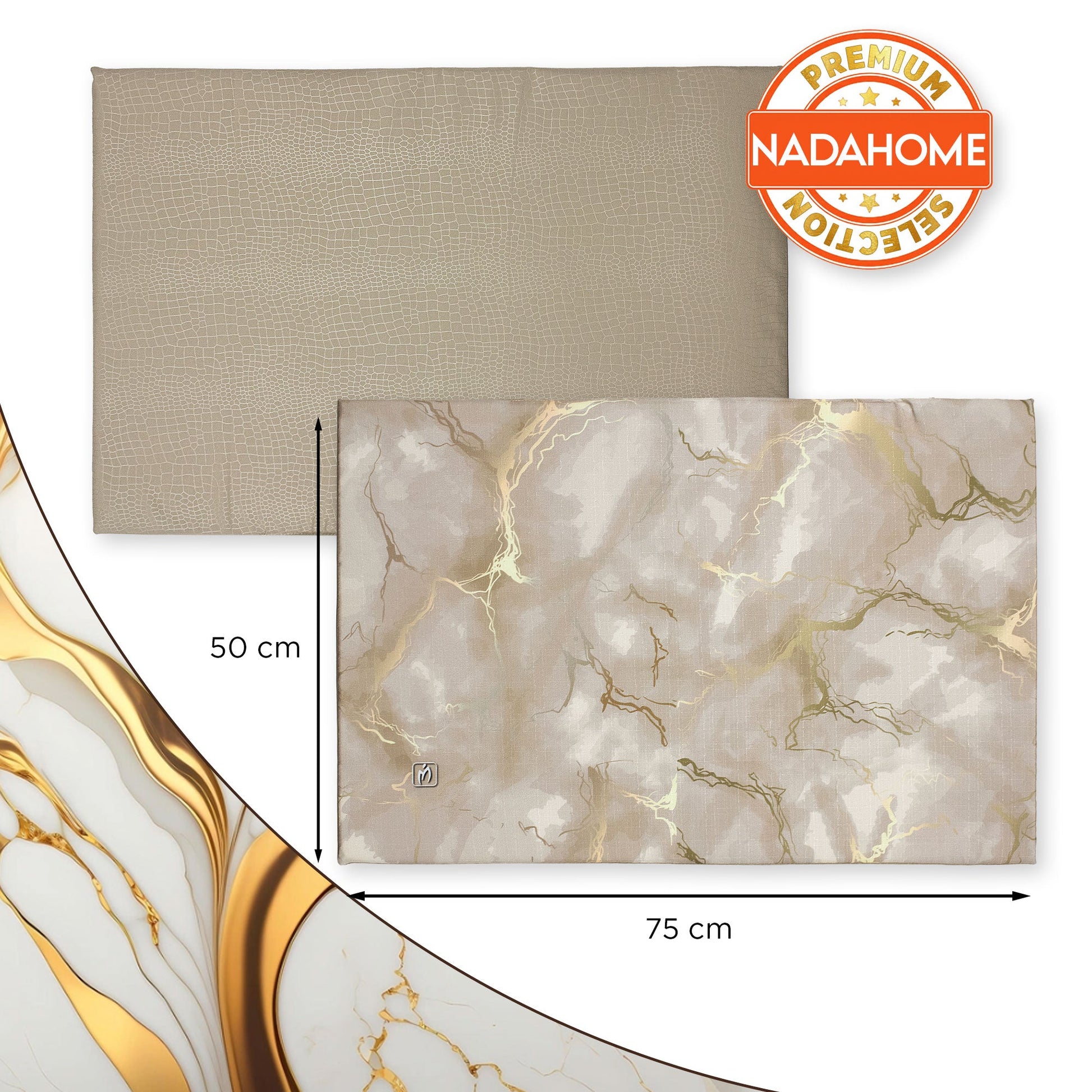Dona un tocco di eleganza alla tua cucina con il coprifornelli imbottito effetto marmo. La stampa digitale marmorizzata con venature oro crea un look raffinato e moderno, trasformando il tuo piano cottura in un vero elemento d’arredo.