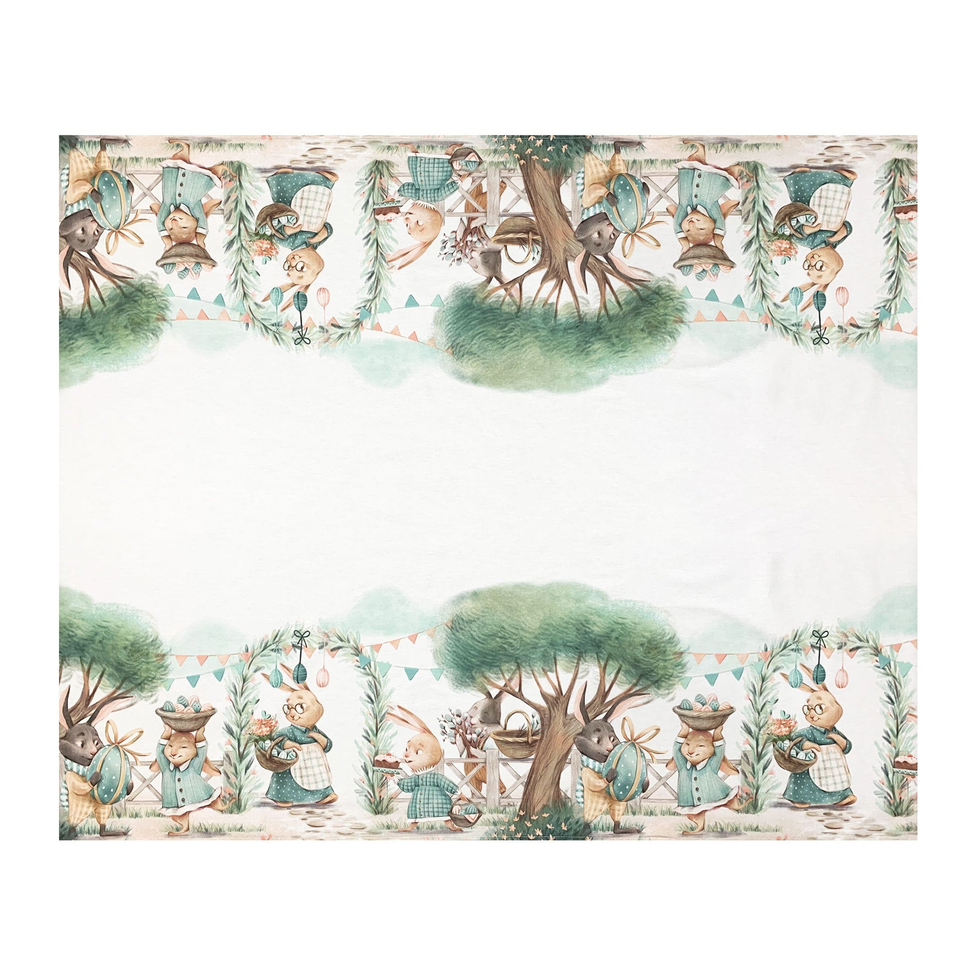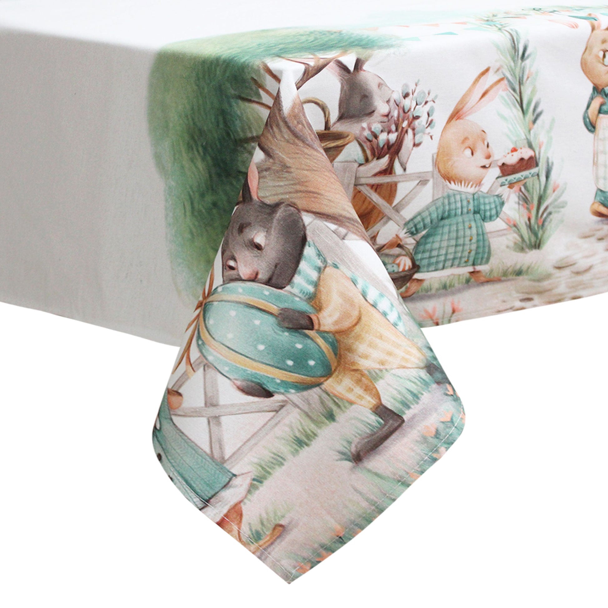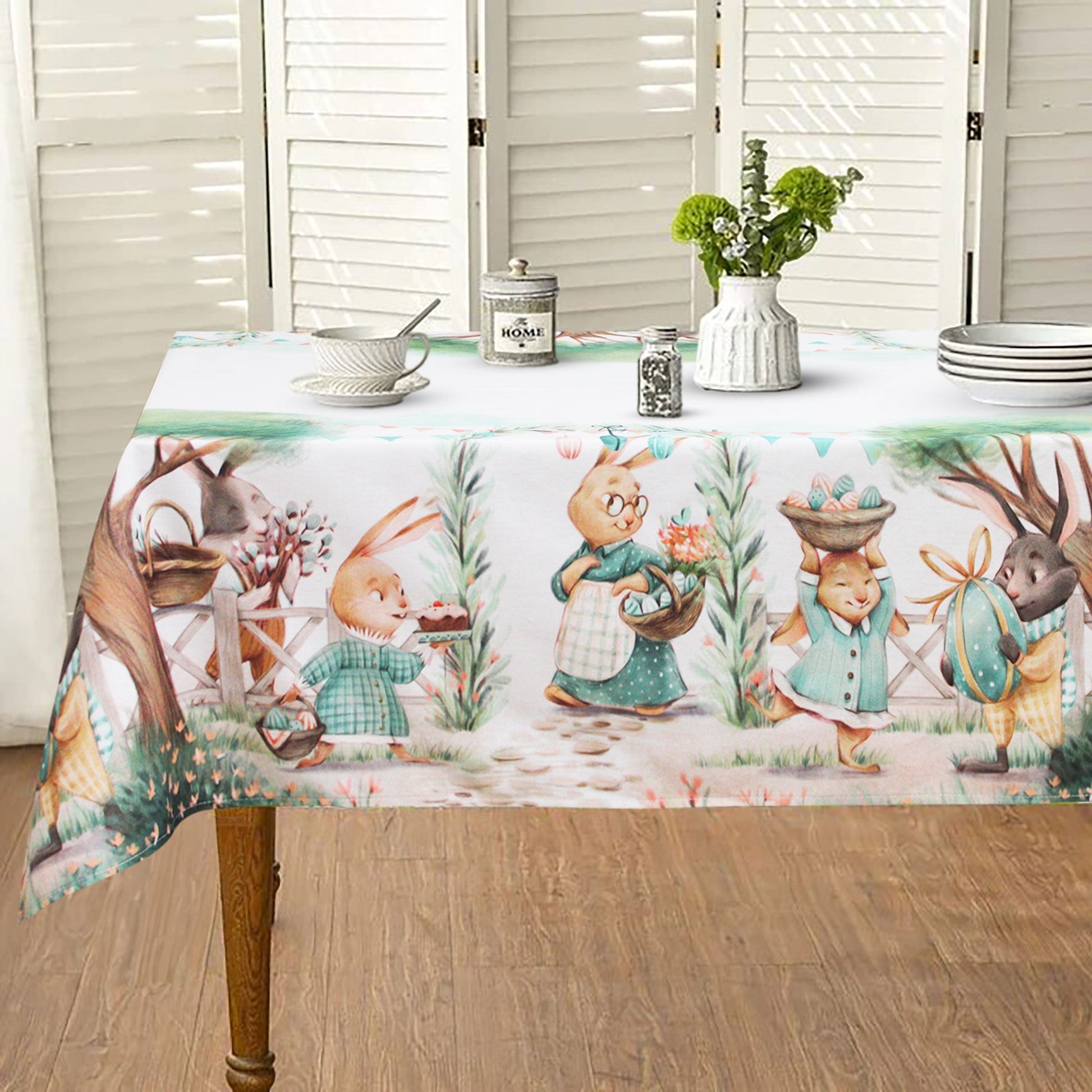 La stampa incantevole con conigli giocosi e cesti di uova pasquali aggiunge un tocco festivo e unico alla tua tavola. Con dimensioni generose di 140x250cm, si adatta perfettamente a tavole da 12 posti, trasformando ogni pasto in un'occasione speciale.