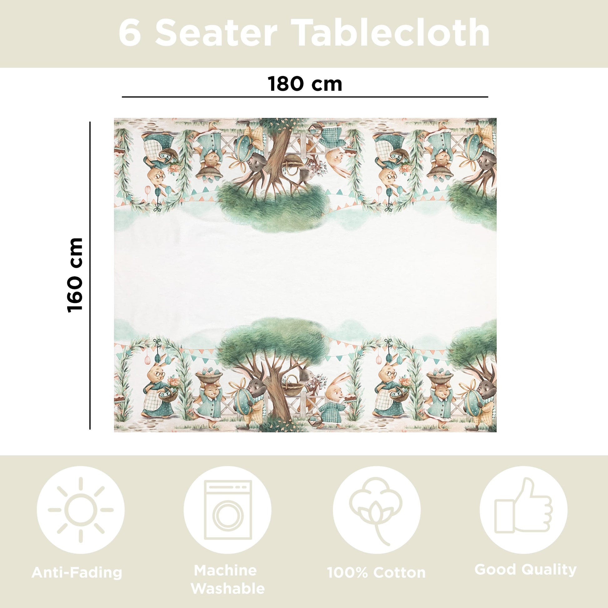 La stampa incantevole con conigli giocosi e cesti di uova pasquali aggiunge un tocco festivo e unico alla tua tavola. Con dimensioni generose di 160x180cm, si adatta perfettamente a tavole da 6 posti, trasformando ogni pasto in un'occasione speciale.