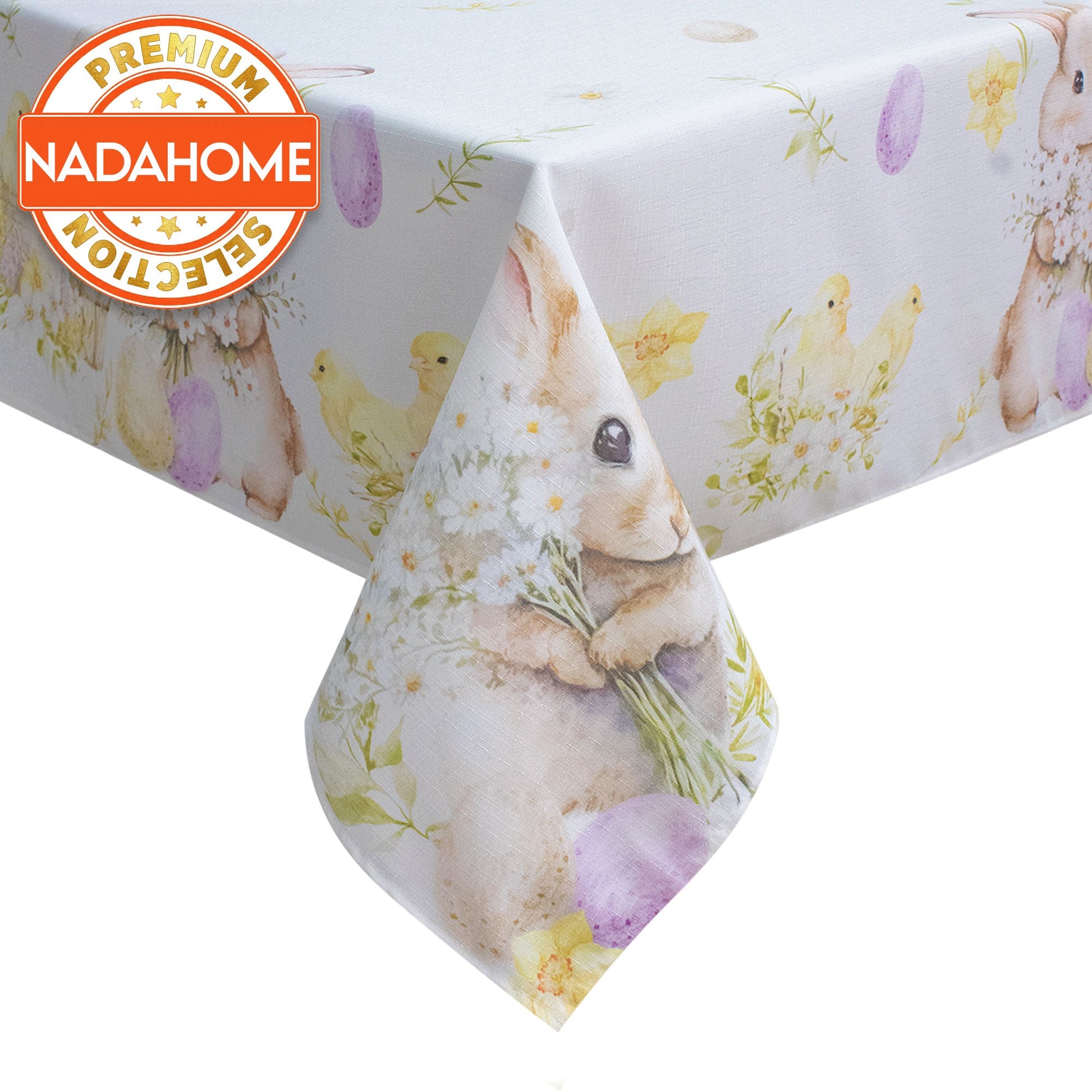 Rendi indimenticabile ogni momento pasquale con il nostro copritavolo decorato con una raffinata stampa digitale che celebra la stagione primaverile: dolcissimi conigli con bouquet di fiori, uova colorate, pulcini in ceste e fiorellini si intrecciano con colori pastello per un’atmosfera elegante e accogliente.