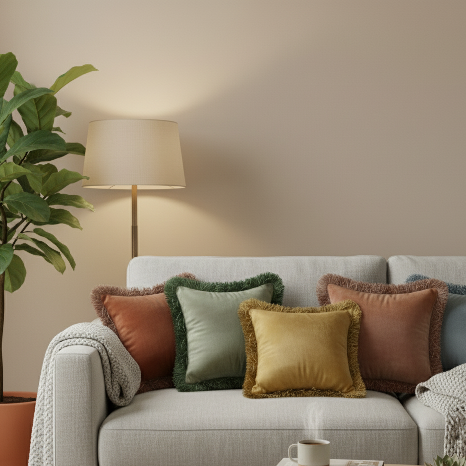 Cuscino Arredo in Velluto con Frange 45x45 cm