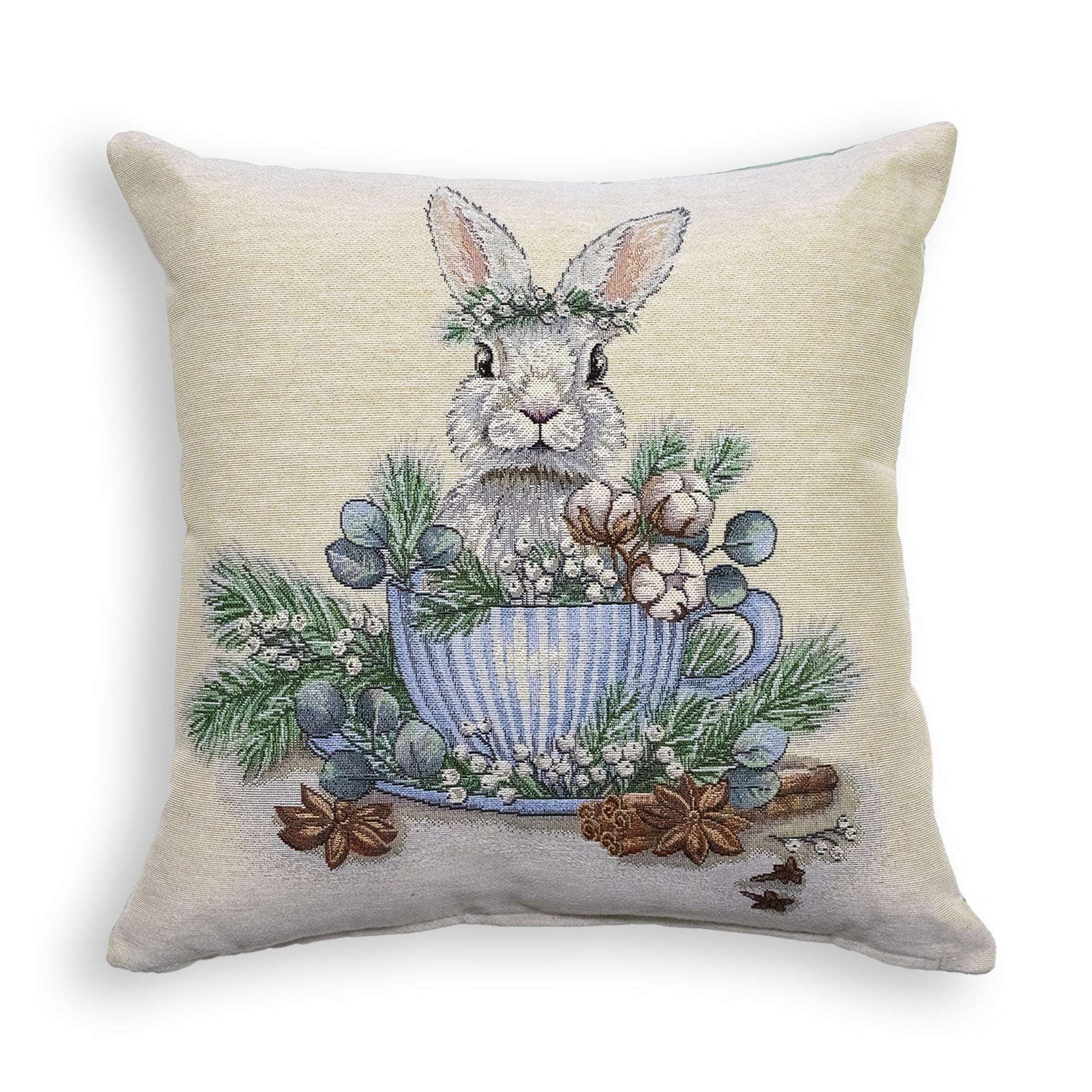 Cuscino arredo pasquale in gobelin decorazione Pasqua coniglio in tazza 7026