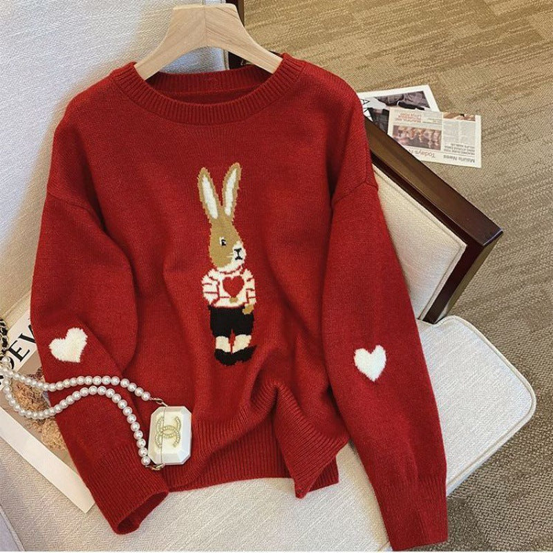 Cute Youth-looking Pullover Cartoon Rabbit Jacquard Long-sleeved Sweater
