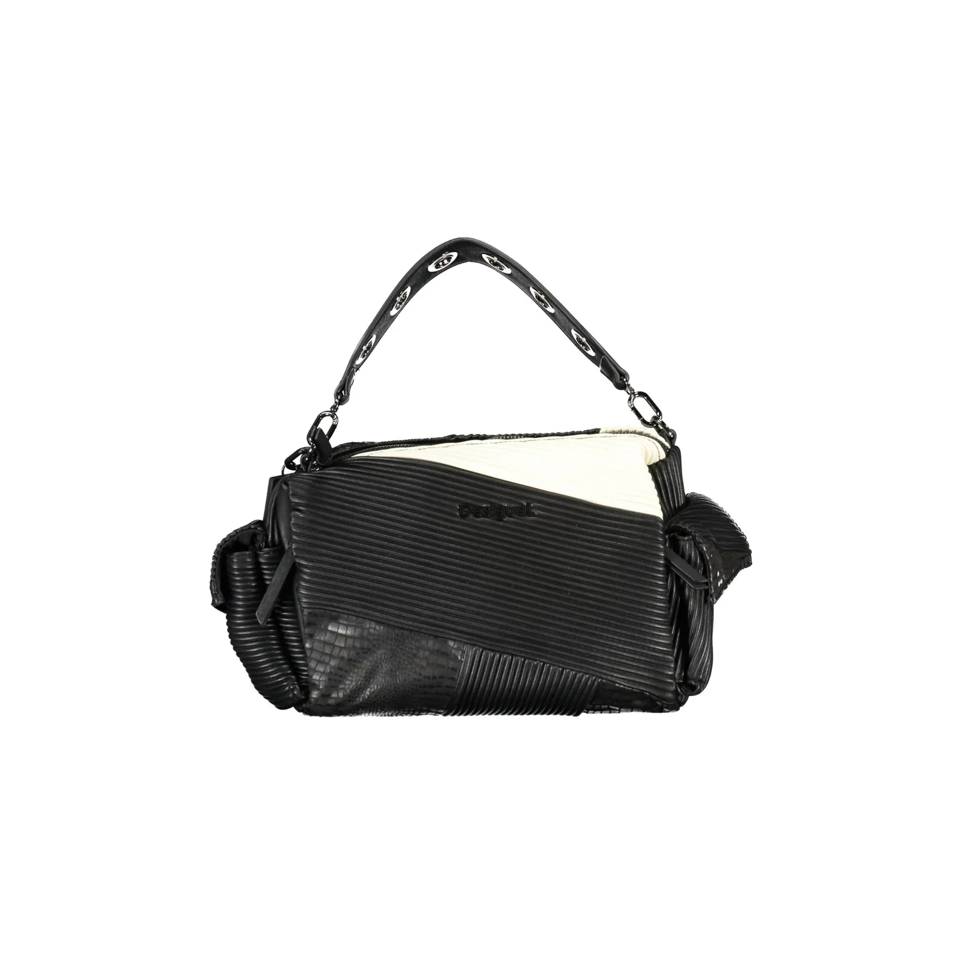 Borsa Desigual in poliuretano con manico e tracolla removibili, tasche multiple, chiusura zip e automatici, dettagli a contrasto, stile pratico e moderno.