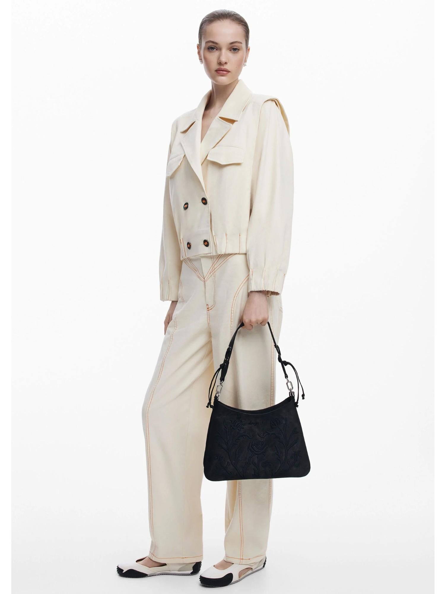Borsa a spalla di piccole dimensioni in tessuto effetto pelle, colore tinta unita, con incisioni effetto 3D e chiusura con cerniera. Colore tinta unita. Tasca interna con cerniera. Chiusura con cerniera. Manico regolabile. Rilievi 3D. Portachiavi rimovibile. Effetto pelle. Progettato a Barcellona. Misure: 32 x 2 x 20 cm. Composizione esterna: 100% Poliuretano. Composizione interna: 100% Poliestere. Trimming fabric material: 100% Poliuretano.