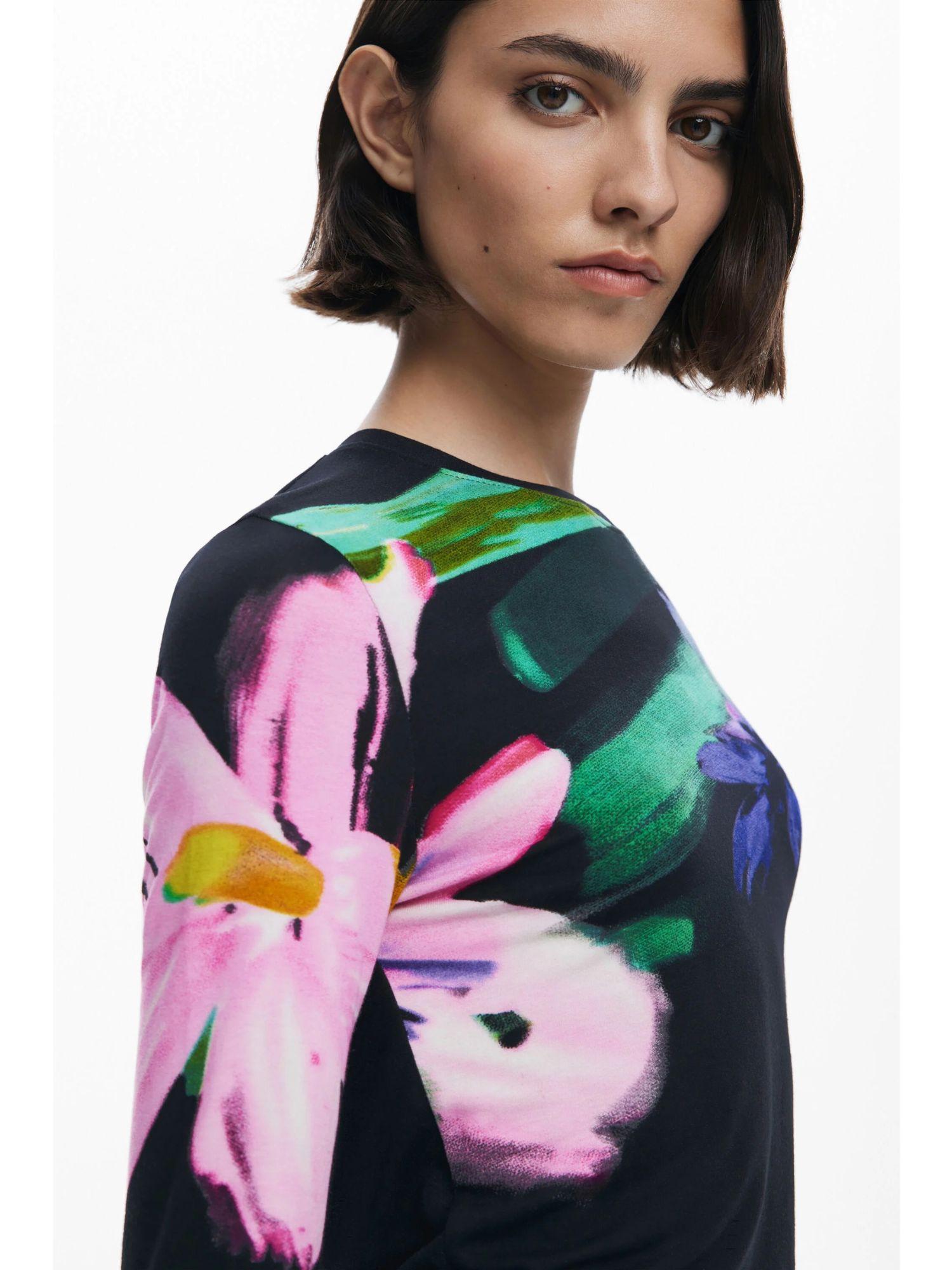 Desigual Maglietta a maniche lunghe con fiori Donna Nero