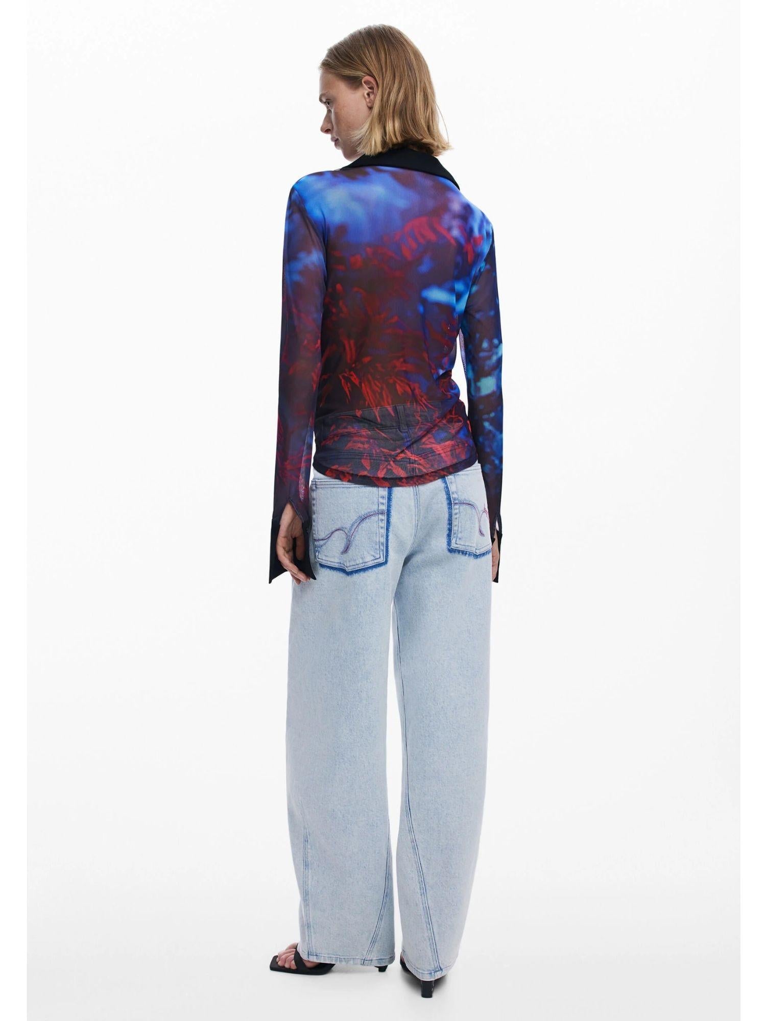 Maglietta in tulle a maniche lunghe con polsini larghi, abbottonatura frontale e colletto a camicia con stampa arty. Fit regular. Colletto a camicia. Manica lunga. Chiusura frontale. Tessuto in tulle. Realizzato con materiali sostenibili. Collezione AW25. Progettato a Barcellona. Poliammide riciclata. Misure modello: altezza 175 cm, vita 59 cm, fianchi 87 cm. Taglia modello: S. Composizione esterna: 94% poliestere, 6% elastan. Composizione interna: 94% poliestere, 6% elastan.