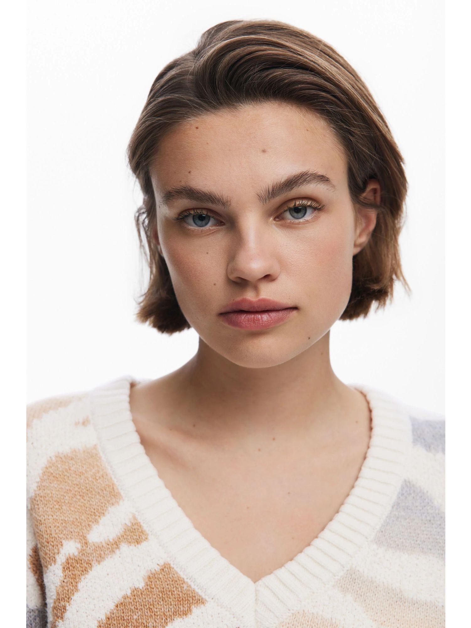 Desigual Maglione zebrato con scollo a V Donna Bianco