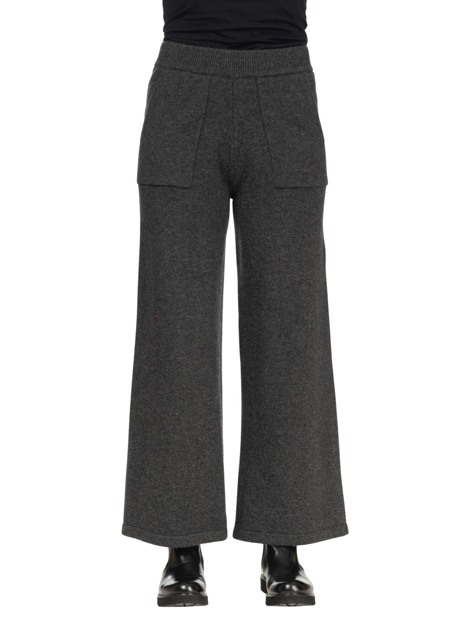 Pantalone in panno gamba ampio due tasche anteriori, fascia elastica in vita