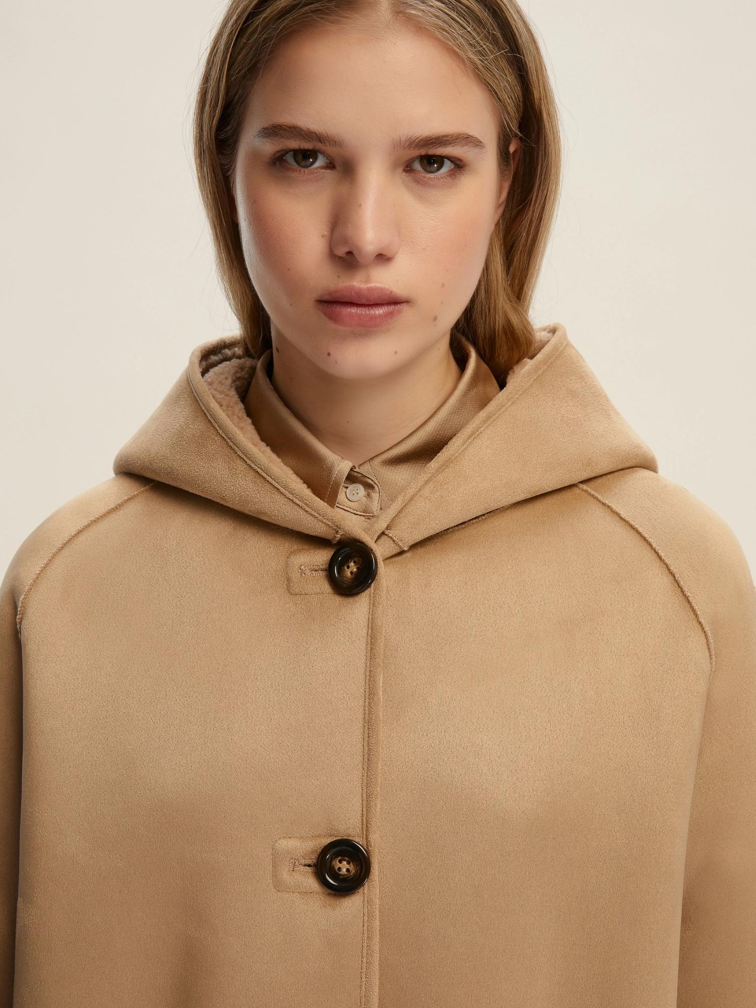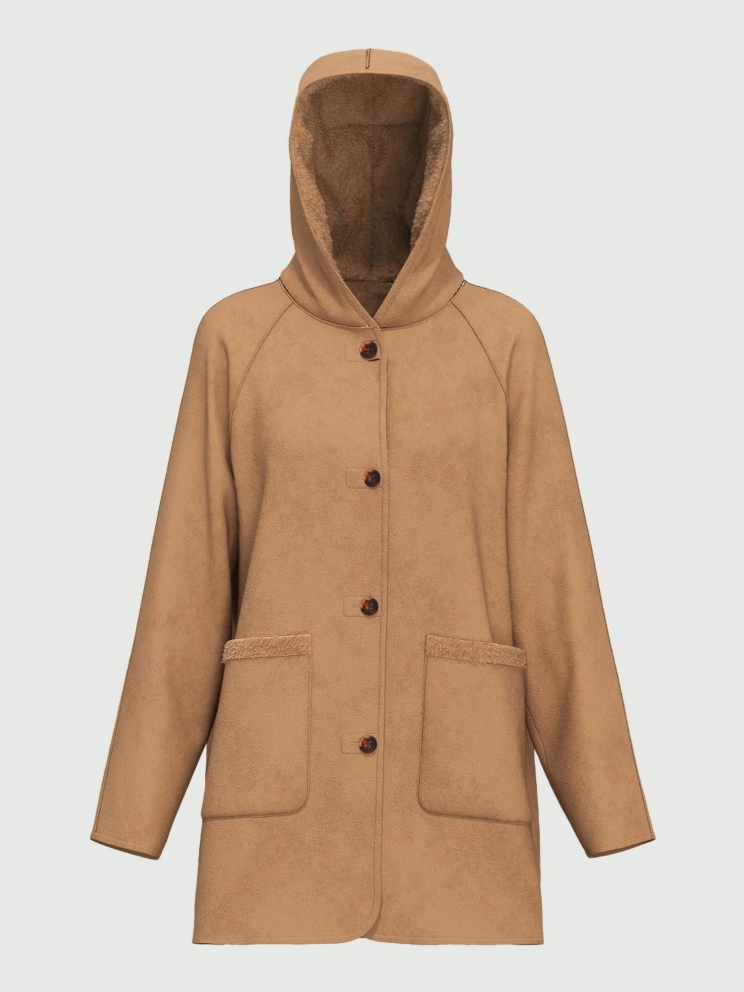 Doppia identità, stesso spirito disinvolto. Il caban reversibile accompagna i movimenti con leggerezza e comfort. Da indossare come un abbraccio urbano, tra passeggiate in città e fughe last minute. Caban reversibile in jersey dal finish vellutato accoppiato con tessuto in materiale morbido. Fit dritto. Collo con cappuccio e maniche raglan. Chiusura monopetto con bottoni a vista. Tasche laterali applicate su un lato e inserite sull'altro. Tessuto esterno: 100% Poliestere. Tessuto interno: 100% Poliestere.