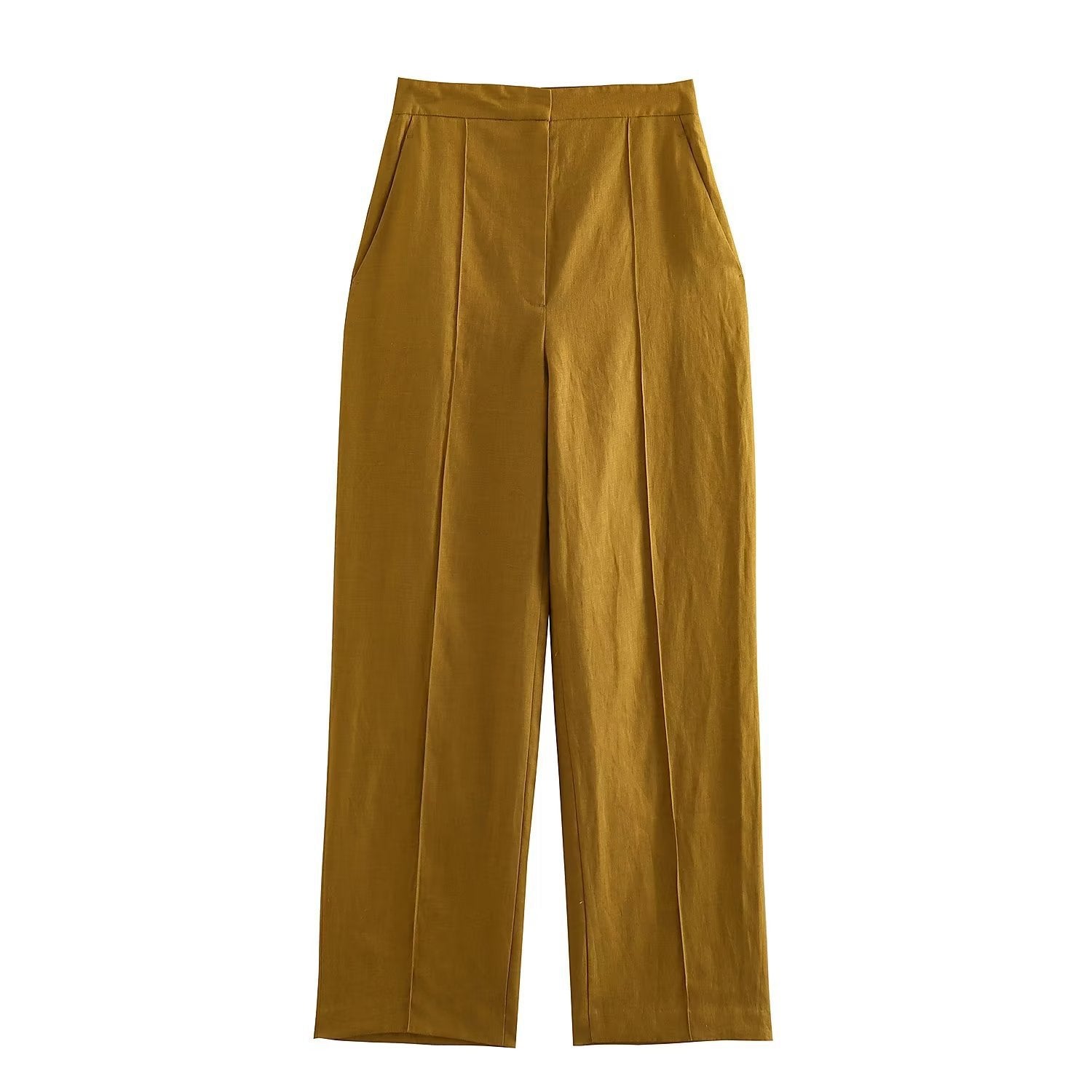 Linen Double Breasted Coat Vest Lines Straight-leg Pants Female Suit