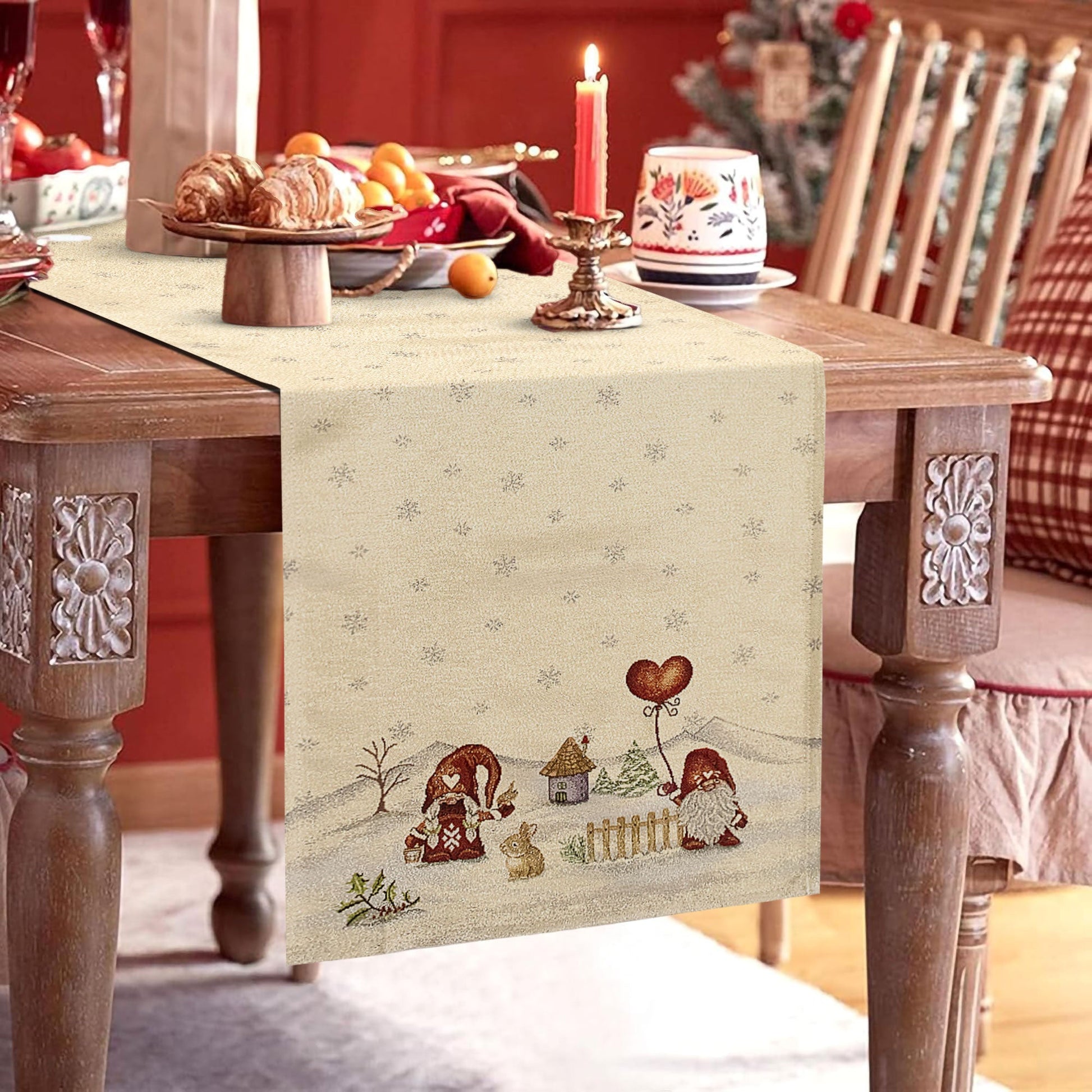 Runner gobelin natalizio da tavolo decorazioni Centrotavola Natale Gnomi 6984