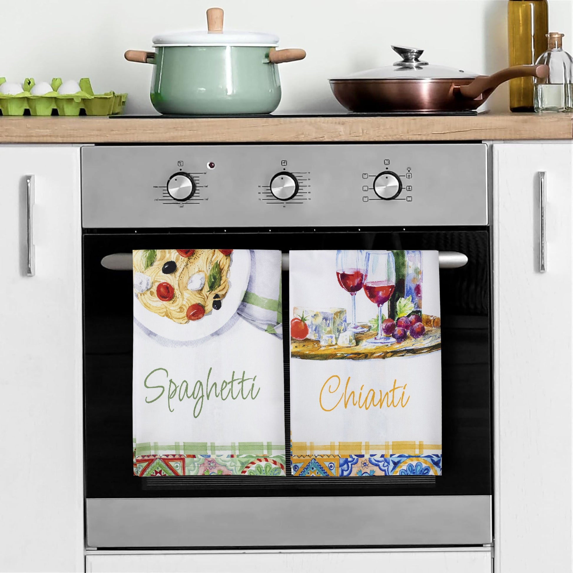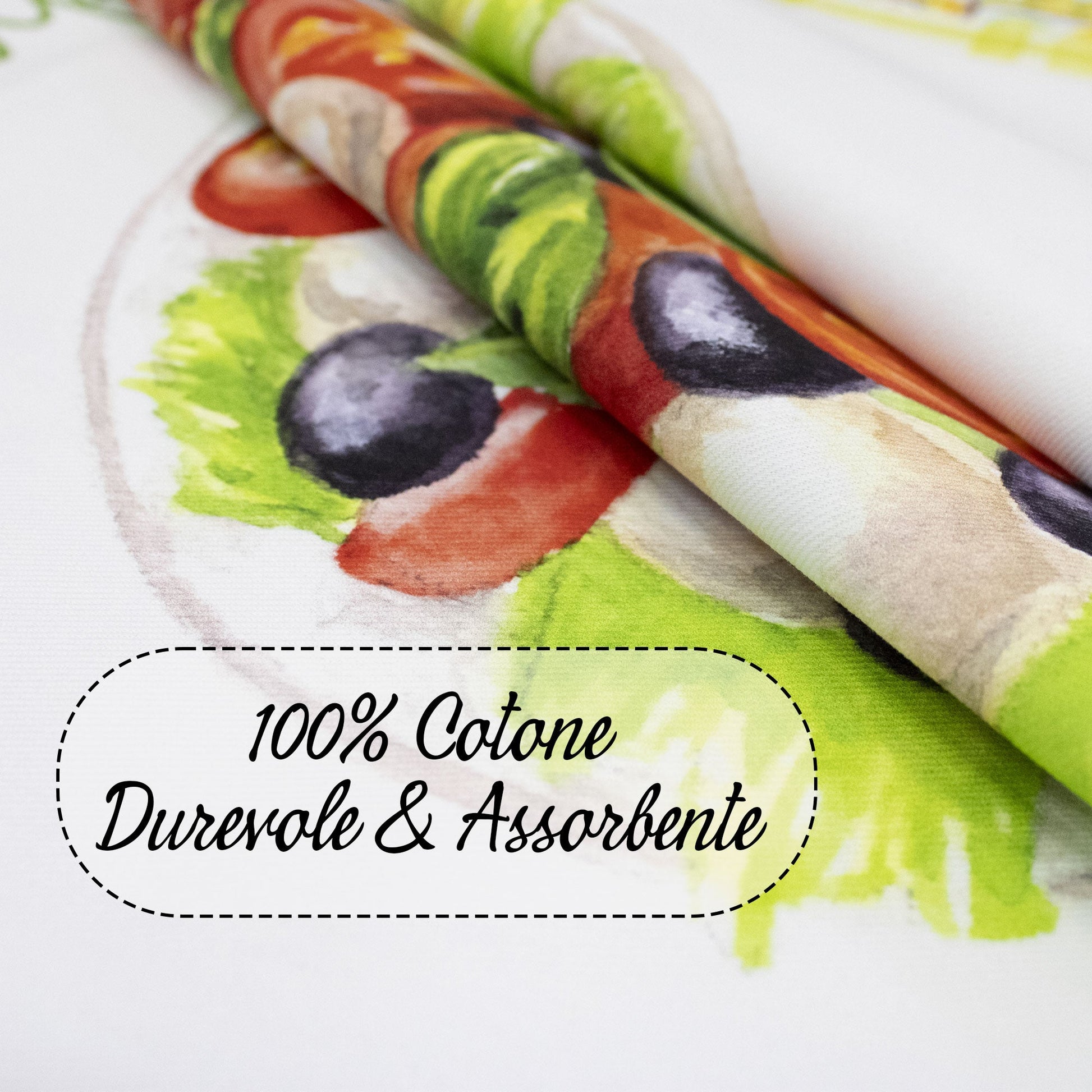 Aggiungi un tocco di cultura culinaria italiana alla tua cucina con questo splendido set di strofinacci. Ogni dettaglio è stato pensato per combinare estetica e funzionalità, permettendoti di celebrare la bellezza dell'Italia ogni giorno mentre svolgi le tue faccende quotidiane. Porta l'incanto e il fascino del Bel Paese nella tua casa e trasformalo in un ambiente unico e raffinato!