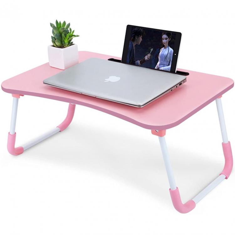 Tavolino Pieghevole Letto Vassoio Colazione Studio Tablet Pc Notebook Legno Rosa