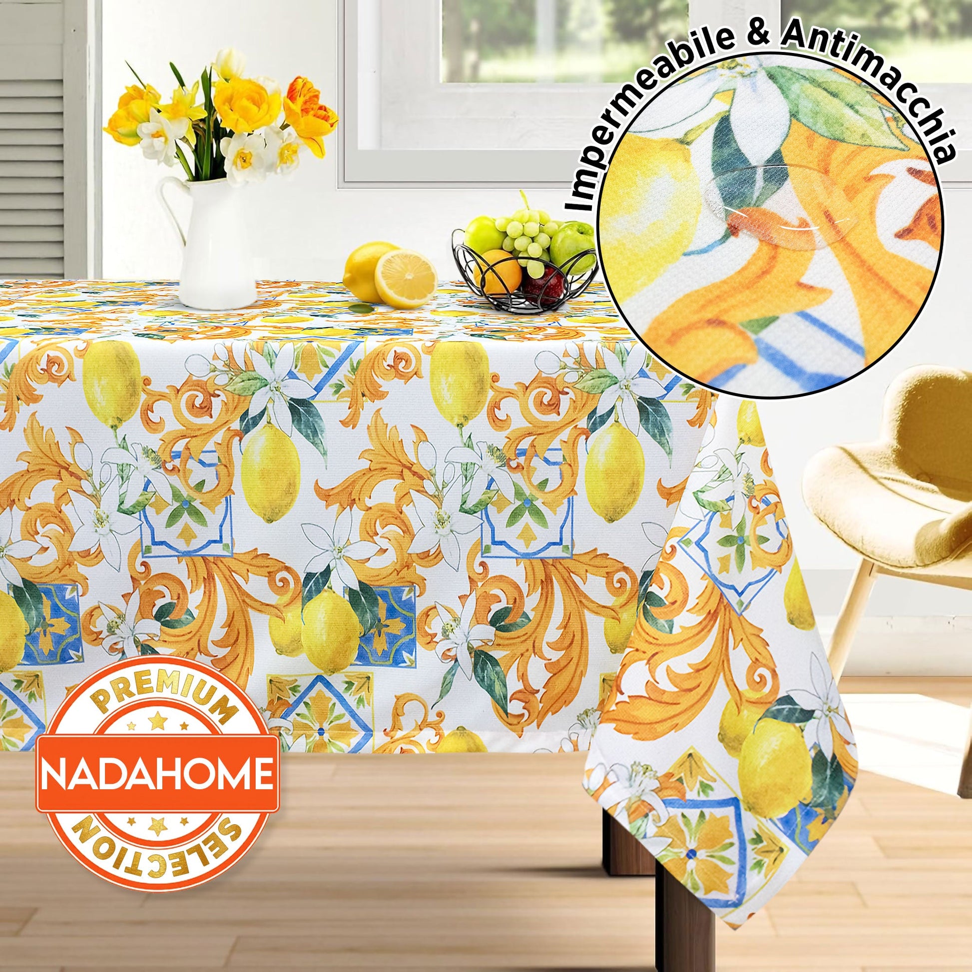 Tovaglia antimacchia copritavolo impermeabile vietrese limoni varie misure 7086