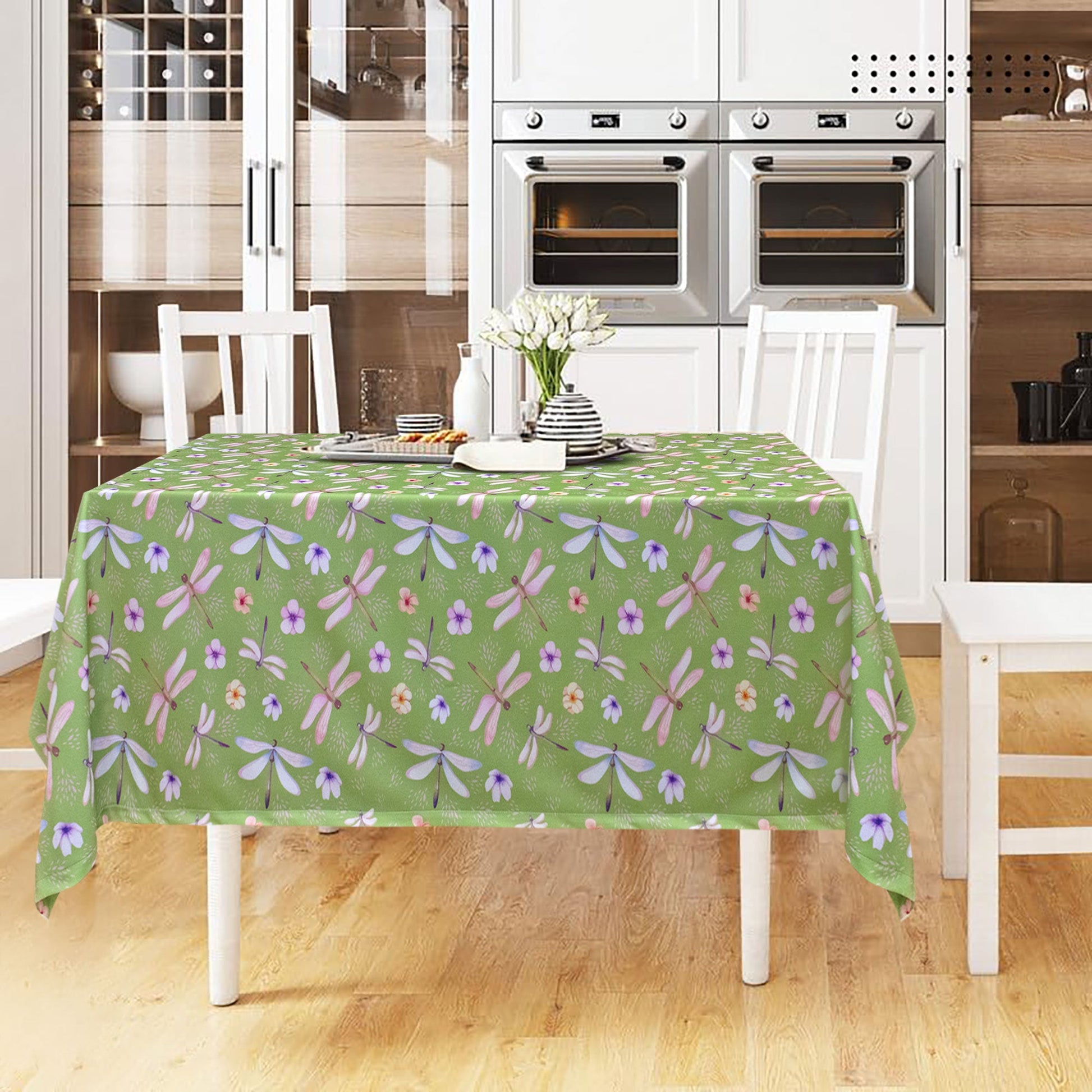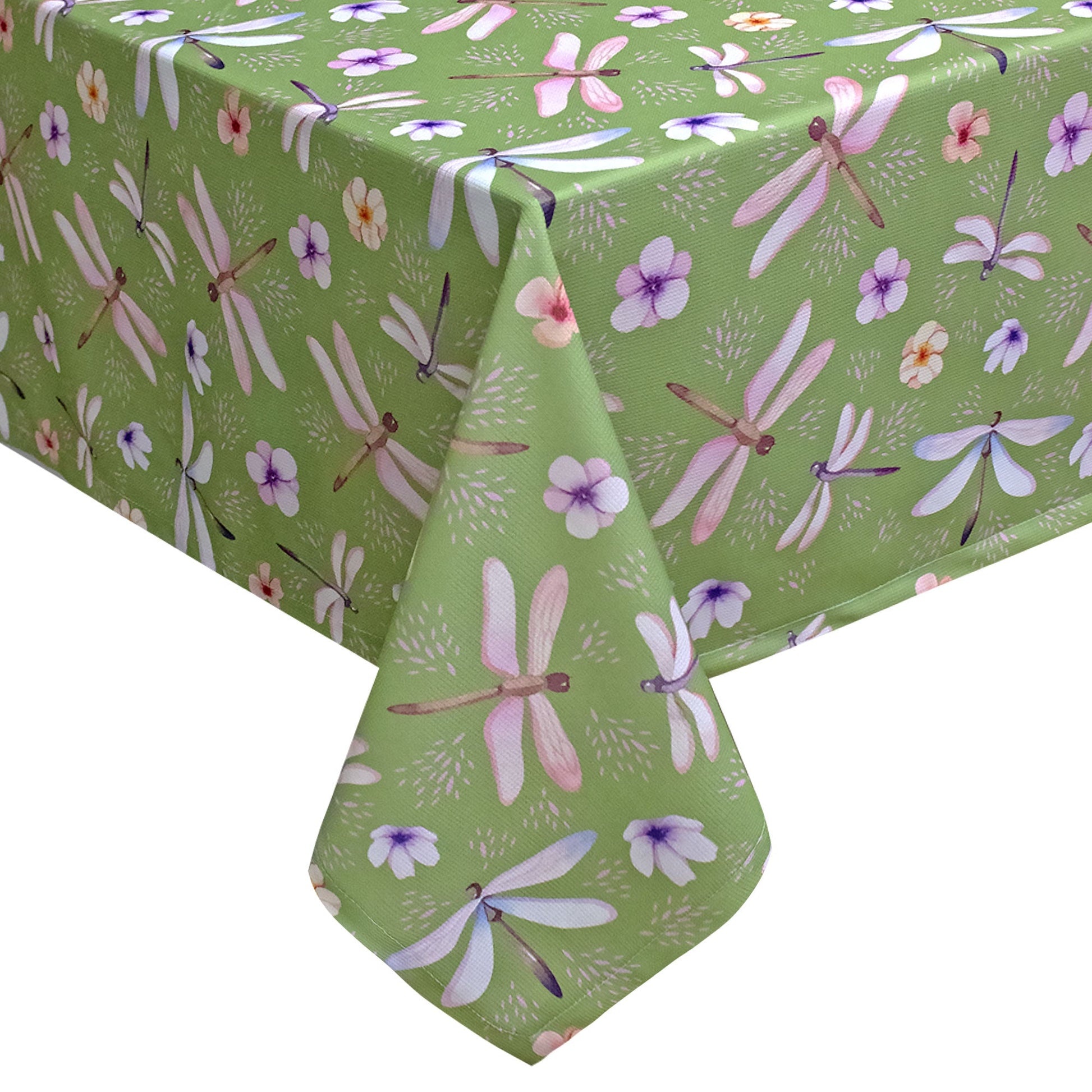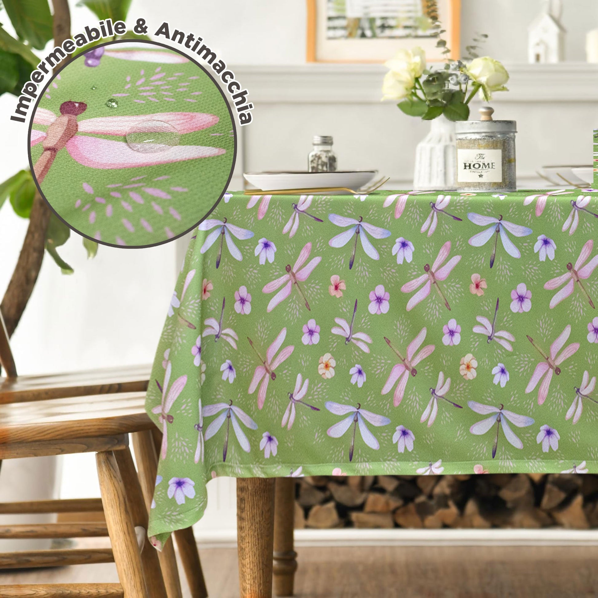 Aggiungi un tocco di freschezza e stile alla tua tavola con la nostra tovaglia antimacchia quadrata, l’ideale per chi cerca eleganza e praticità in ambienti come ristoranti, hotel e B&B. La tovaglia presenta una delicata stampa di libellule e fiorellini su uno sfondo verde, creando un'atmosfera naturale e rilassante.