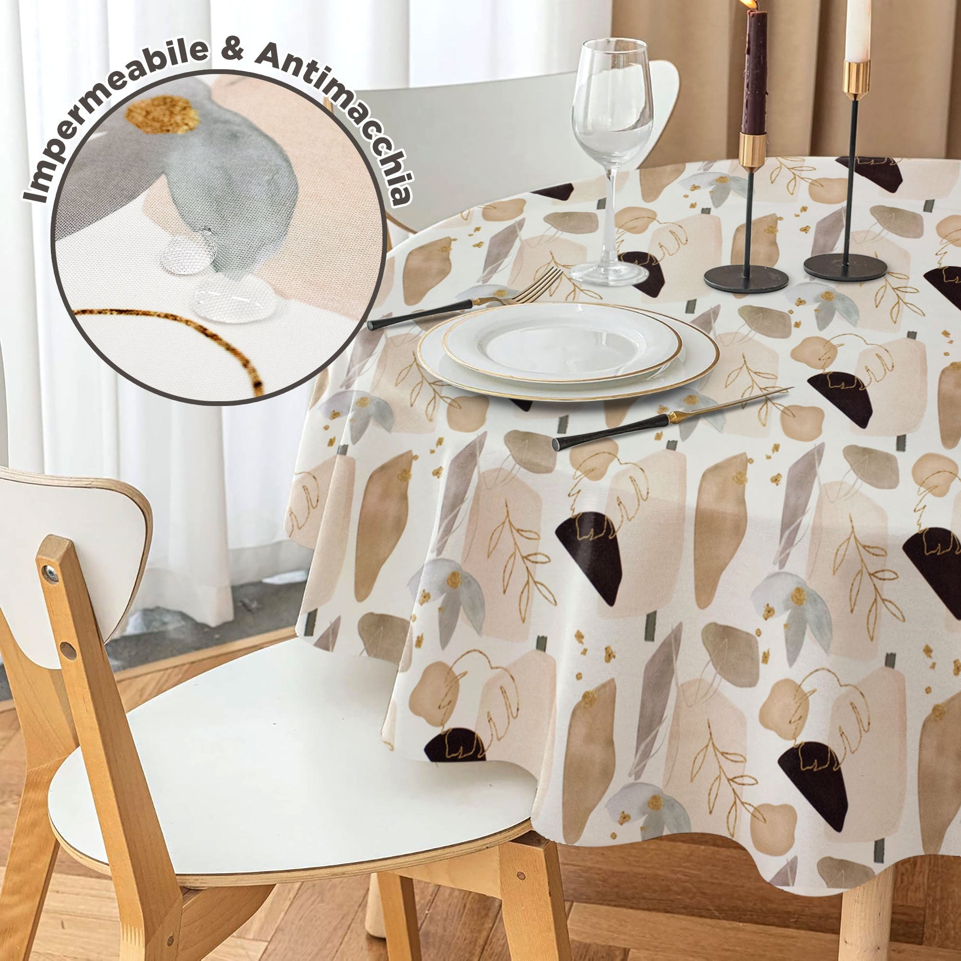 Tovaglia antimacchia rotonda copritavolo impermeabile Foglie 140cm 6929