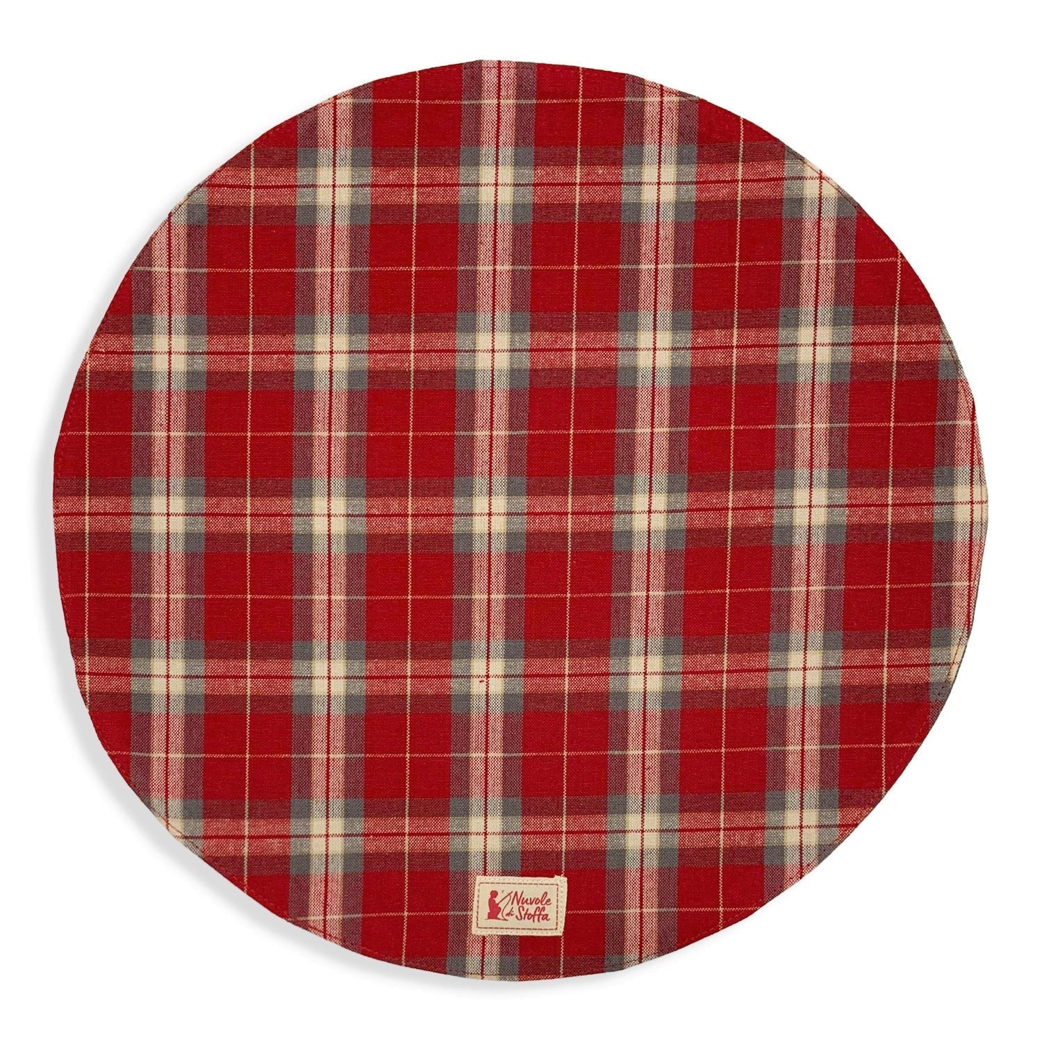 Tovaglietta americana tonda double face per colazione natalizia collezione Bonnie, motivo tartan.