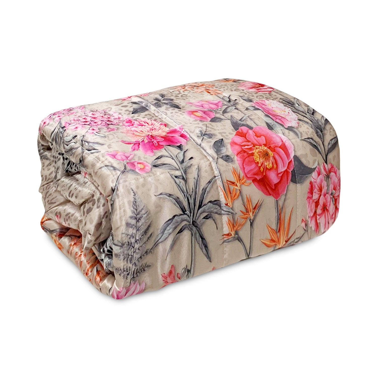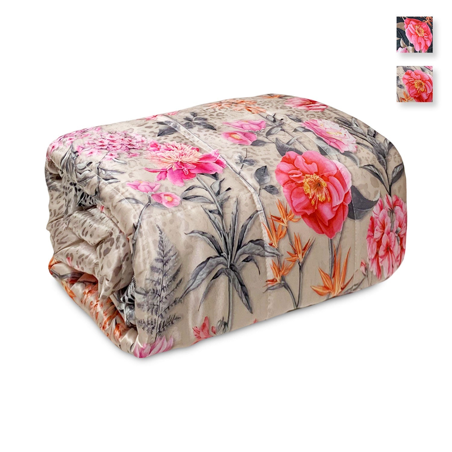 Il copriletto trapuntato art. Gardenia con il suo tessuto in policotone in raso stampa floreale rende un effetto luminoso adatto ad ogni tipo di ambiente.