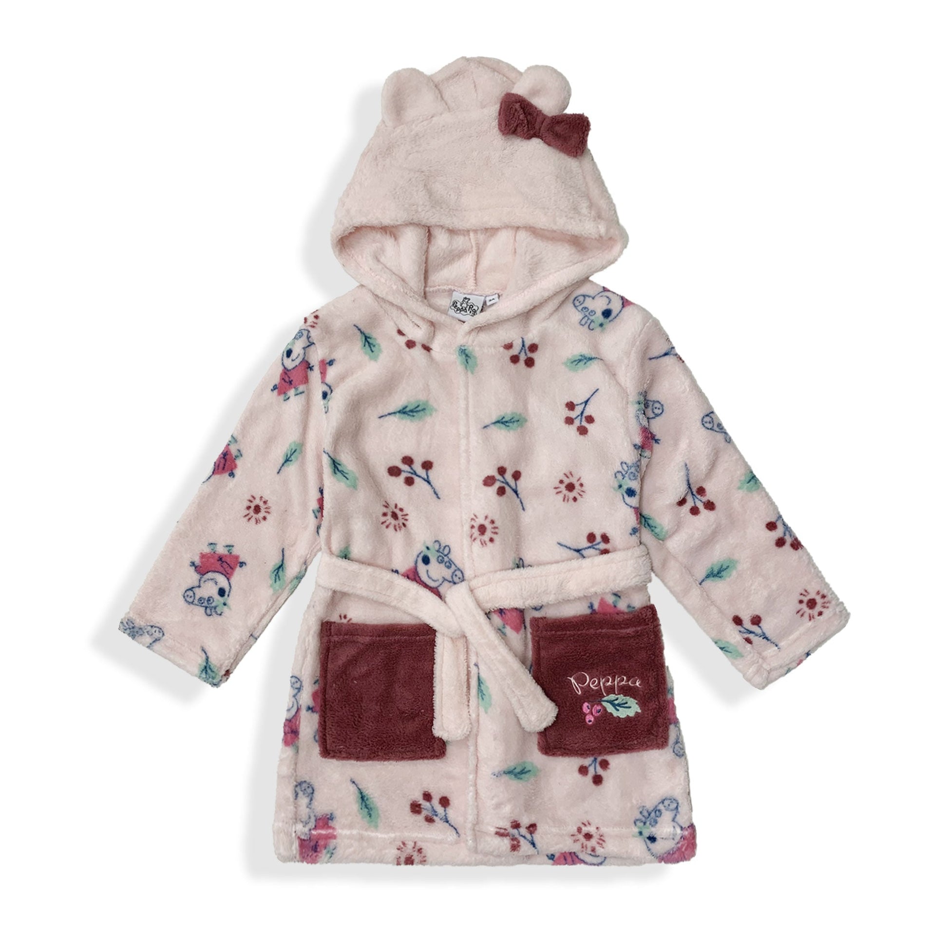 Vestaglia per bambini stampata con maniche, cinta e cappuccio con orecchie in pile di Peppa Pig.