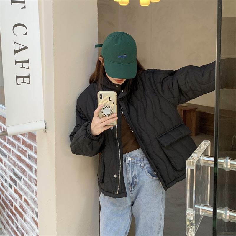Women's Simple Stand Collar Wavy Cotton-padded Jacket